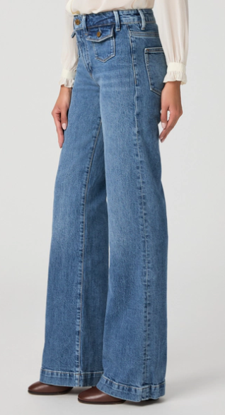 This sleek wide leg is designed with a high-rise and a flattering bow leg silhouette. In a light wash with mini patch pockets and a 32" inseam, this pair is crafted from heritage-inspired denim with a soft hand-feel and a hint of stretch.